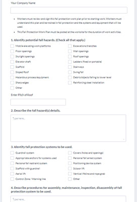 1Worker fills out a hazard assessment and if they answer yes to wearing a harness the inspection form pops up for completing, or via QR code.