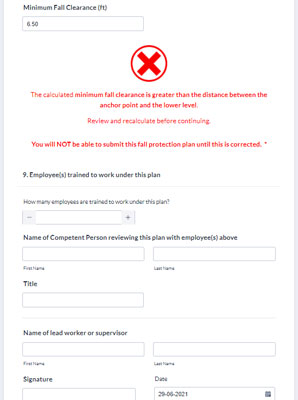 3 When complete if the calculation is unsafe, worker recieves a warning and must adjust before being able to submit.